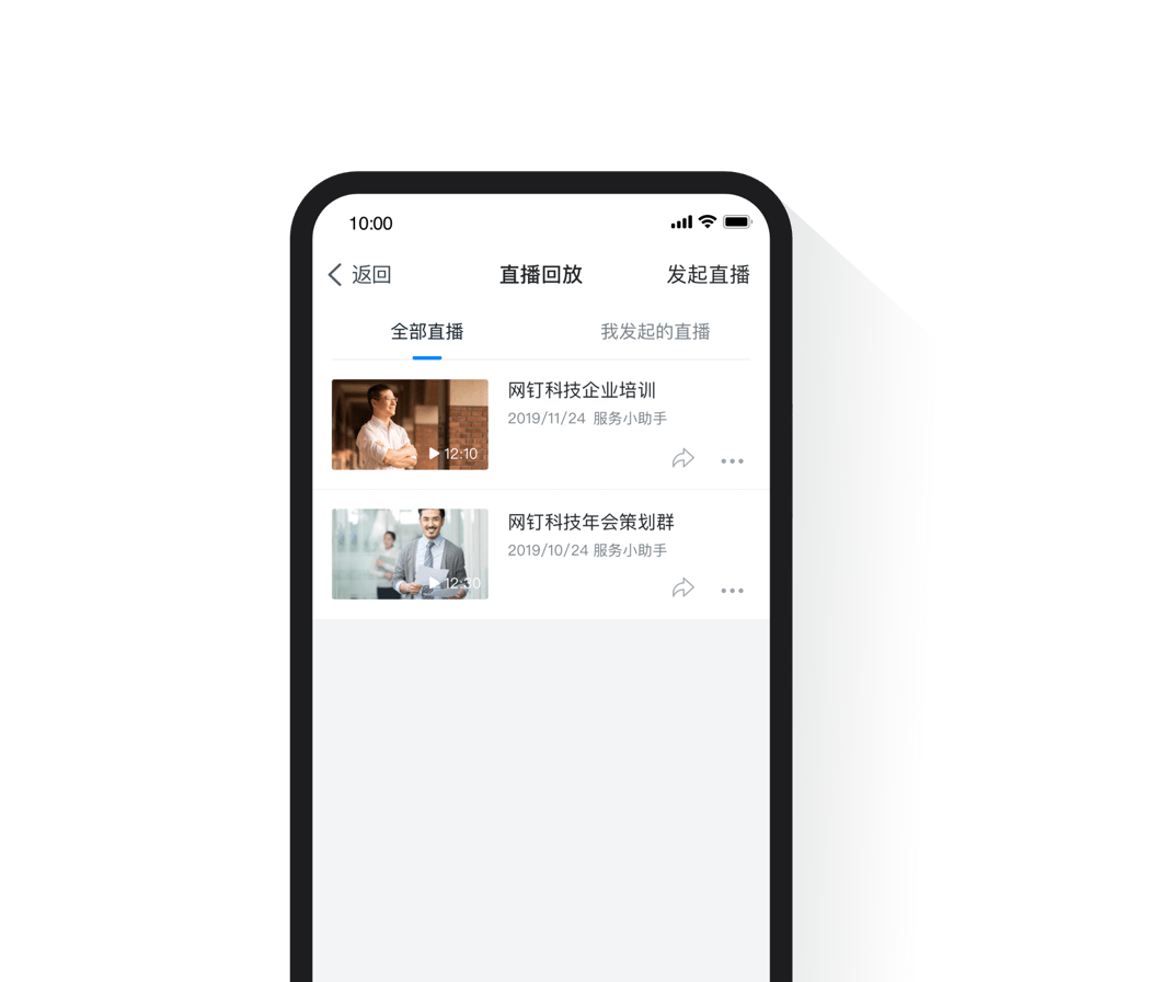 企業培訓通過釘釘群直播,異地多人培訓輕松舉行,不能參加的還可以查看直播錄像。